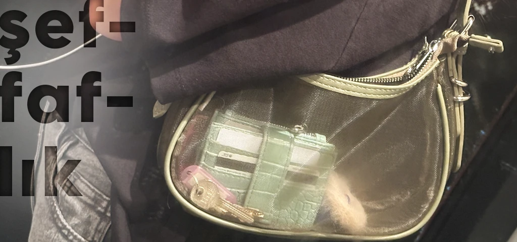 etrafımdakilere şeffaflık düsturumdur bakın bu da kanıtı diye aptalca şakalar yapmak için kullandığım çantam. kuzenim en son ilkelerini aksesuarlarına yansıt tabii ama kıyafetlerine yansıtırken düşün diye şakaladı beni.